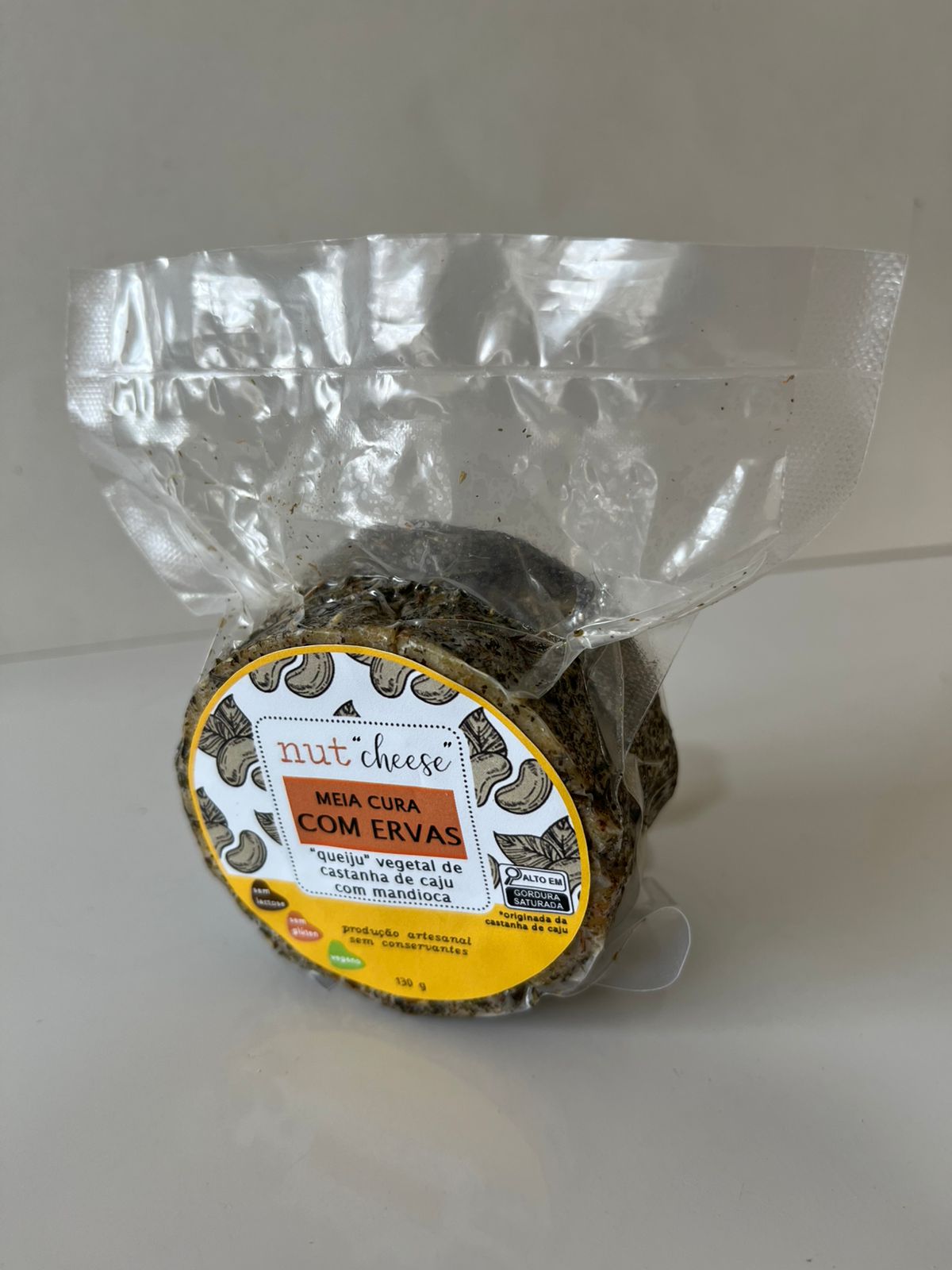 Apresentamos o Queijo Meia Cura Ervas Finas Nut Cheese, uma harmoniosa combinação de castanha de caju, mandioca e ervas frescas, criado para quem busca sabor autêntico e alimentação consciente. Produzido artesanalmente, sem conservantes ou lactose, este queijo vegetal é uma opção sofisticada para o dia a dia ou ocasiões especiais.